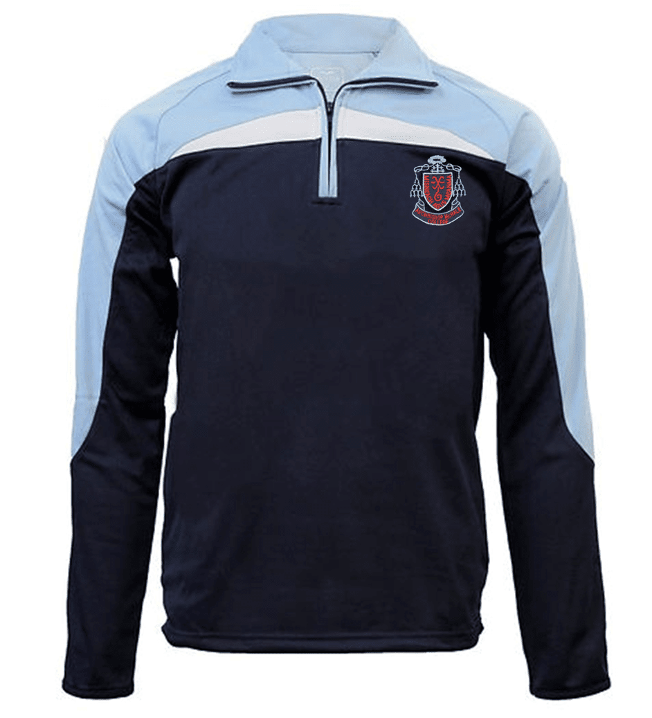 Training top is crested with the school logo